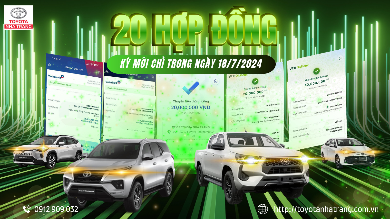 - Chúng tôi chân thành cảm ơn Quý khách đã tin tưởng và đồng hành cùng Toyota Nha Trang. Mỗi sự ủng hộ của Quý khách là động lực để chúng tôi không ngừng nỗ lực và cải tiến, mang đến những sản phẩm và dịch vụ tốt nhất. Hãy để Toyota Nha Trang trở thành người bạn đồng hành lý tưởng trên con đường chinh phục mọi ước mơ của bạn!