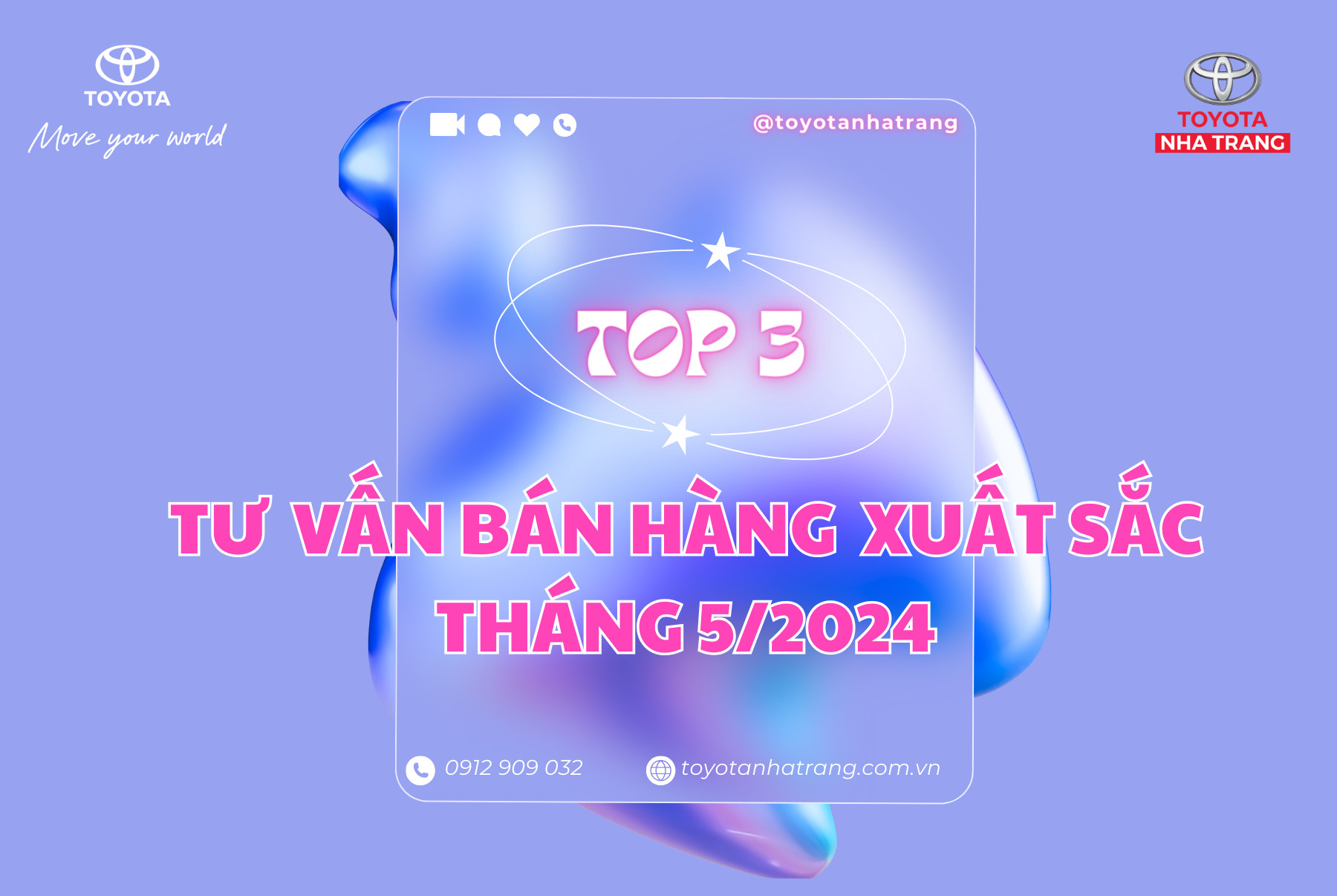Top1: Ms. ĐỖ THỊ TƯỜNG VIÊN - Best seller & Giải ngân tài chính Toyota cao nhất tháng 5.2024Top2: Mr. PHẠM TRUNG HIẾU - Top 3 tư vấn bán hàng xuất sắc tháng 5Top3: Mr. PHAN HÀN CHƯƠNG - Top 3 tư vấn bán hàng xuất sắc tháng 5