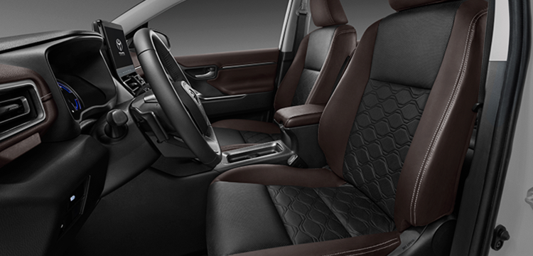 Ghế bọc da màu nâu đen cao cấp cùng họa tiết dập nổi, thiết kế cứng cáp ôm lấy thân hành khách mang đến sự êm ái khi ngồi.