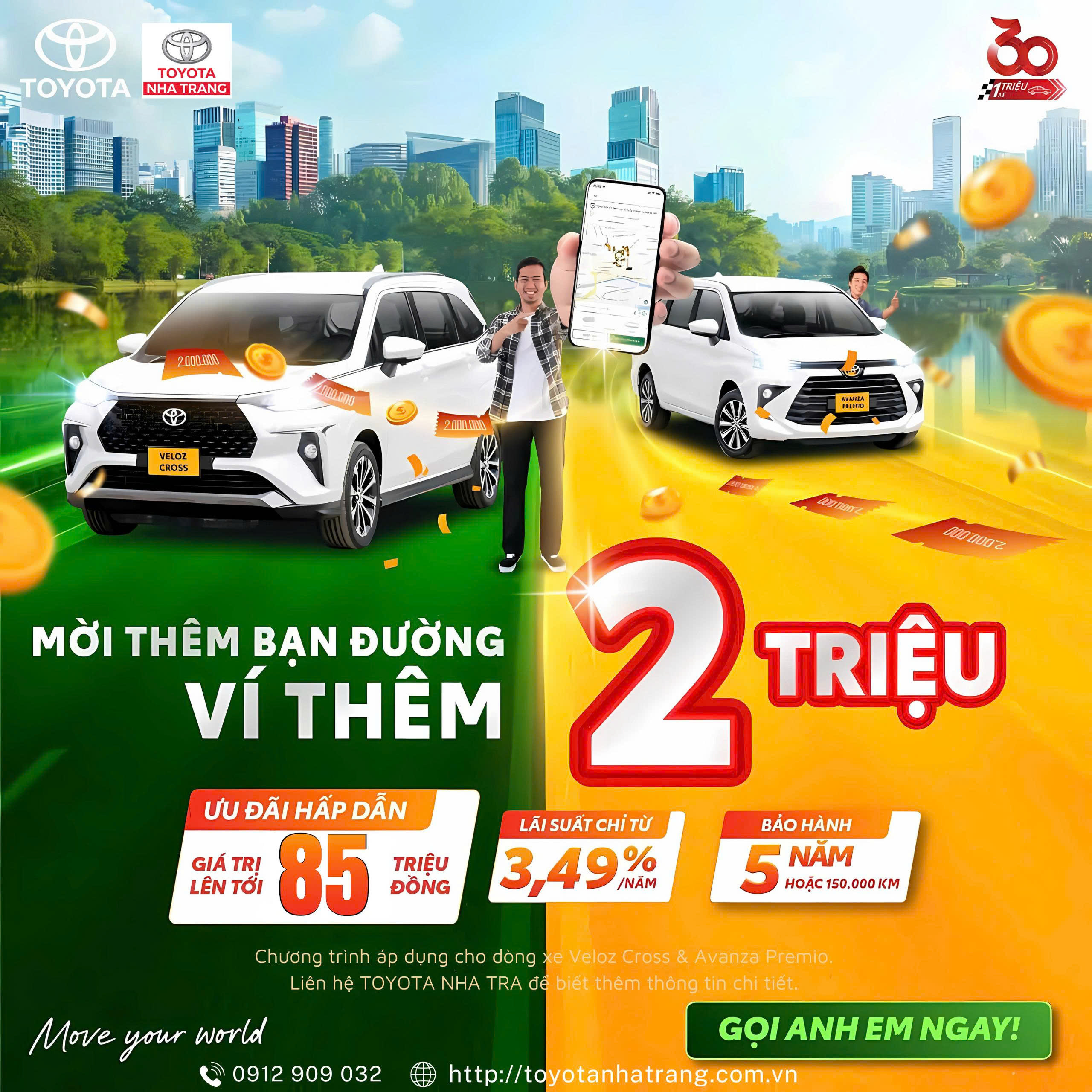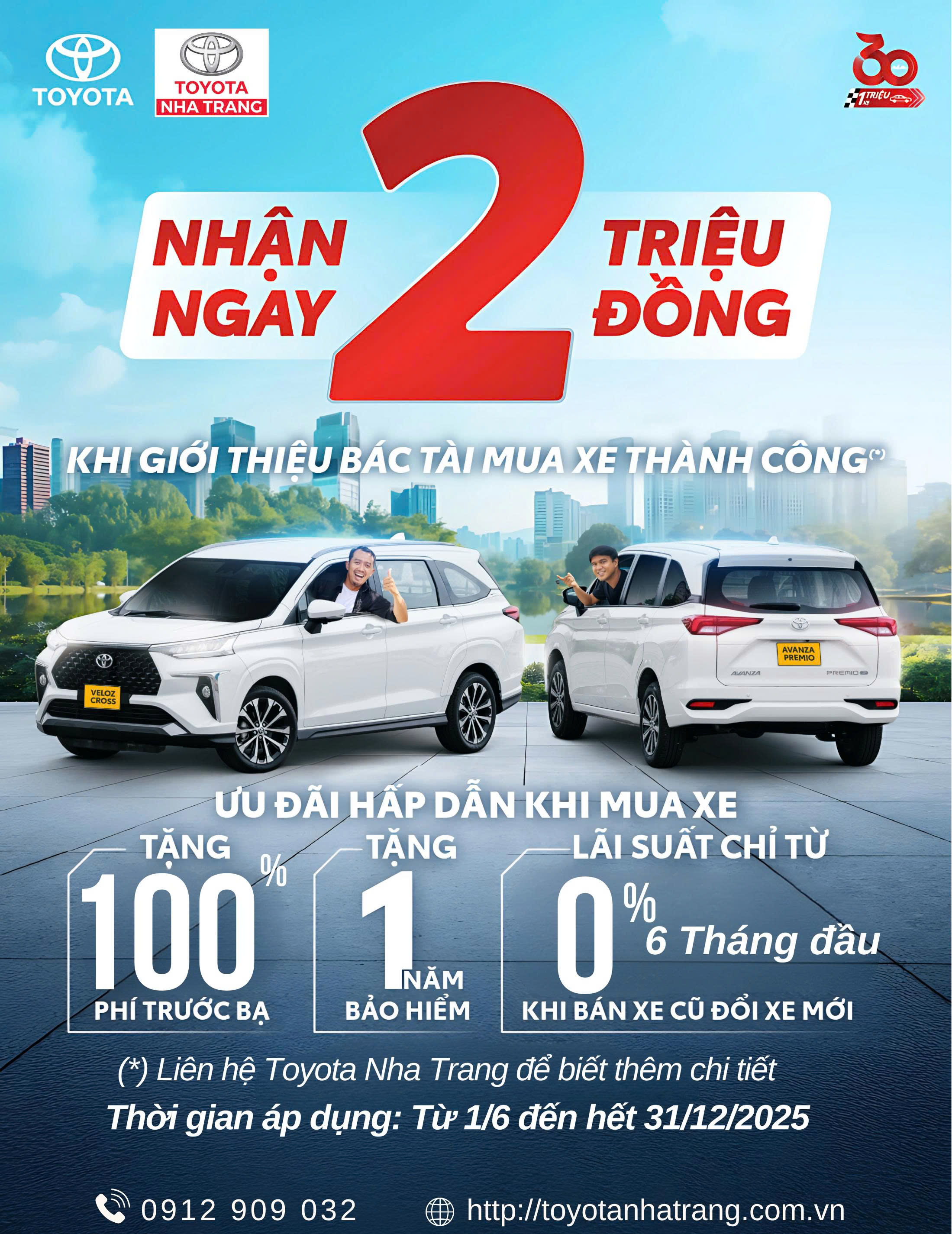 Bạn là tài xế dịch vụ (taxi, công nghệ, hợp đồng,...)? Chỉ cần giới thiệu khách hàng mua xe Toyota Veloz Cross hoặc Avanza Premio để kinh doanh vận tải, bạn sẽ nhận ngay 2 TRIỆU ĐỒNG khi giới thiệu mua xe thành công!