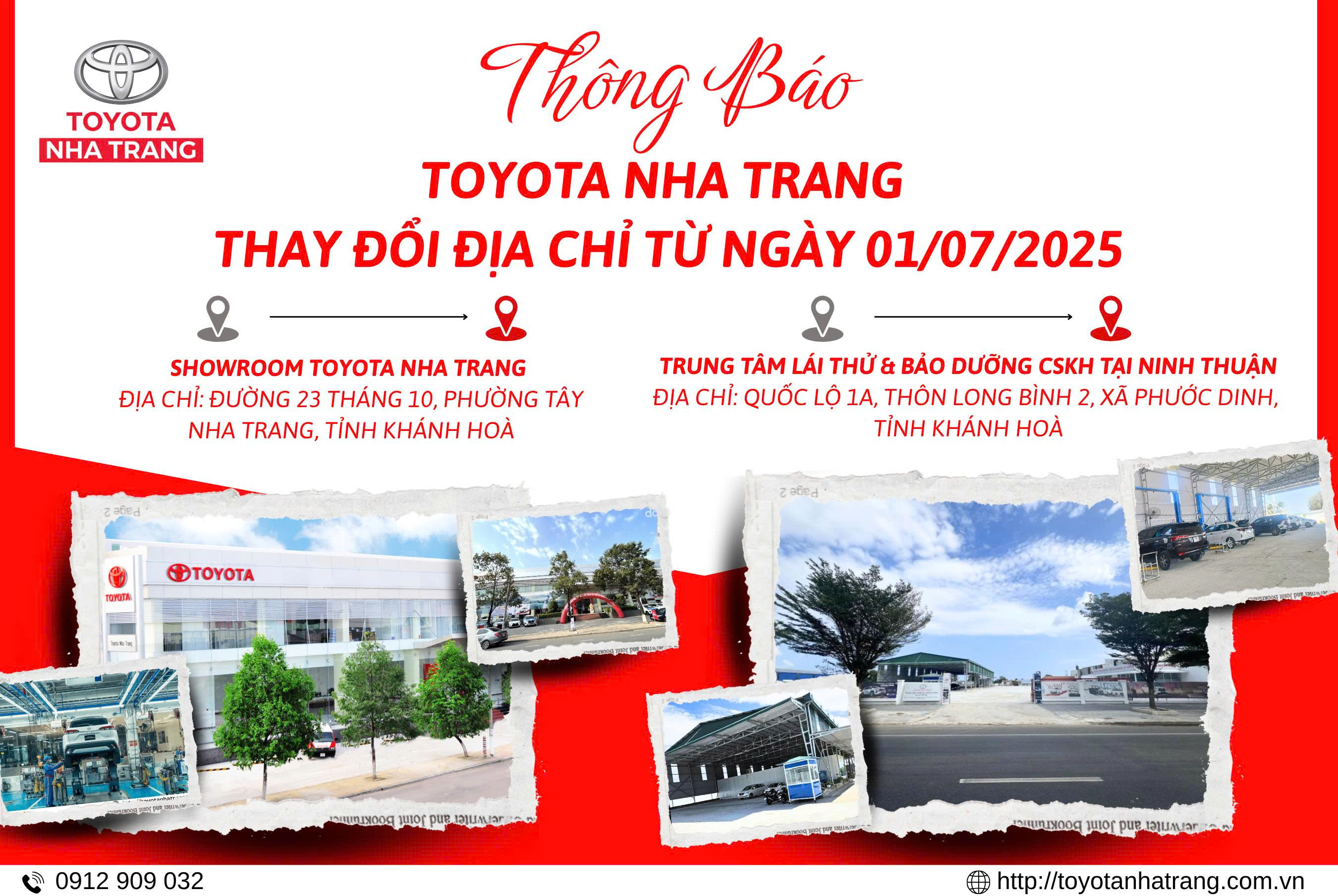 Toyota Nha Trang xin trân trọng thông báo: Từ 01/07/2025, hệ thống showroom và trung tâm dịch vụ khách hàng sẽ thay đổi tên địa chỉ hành chính theo quy định mới, không thay đổi vị trí thực tế. Cụ thể như sau:
