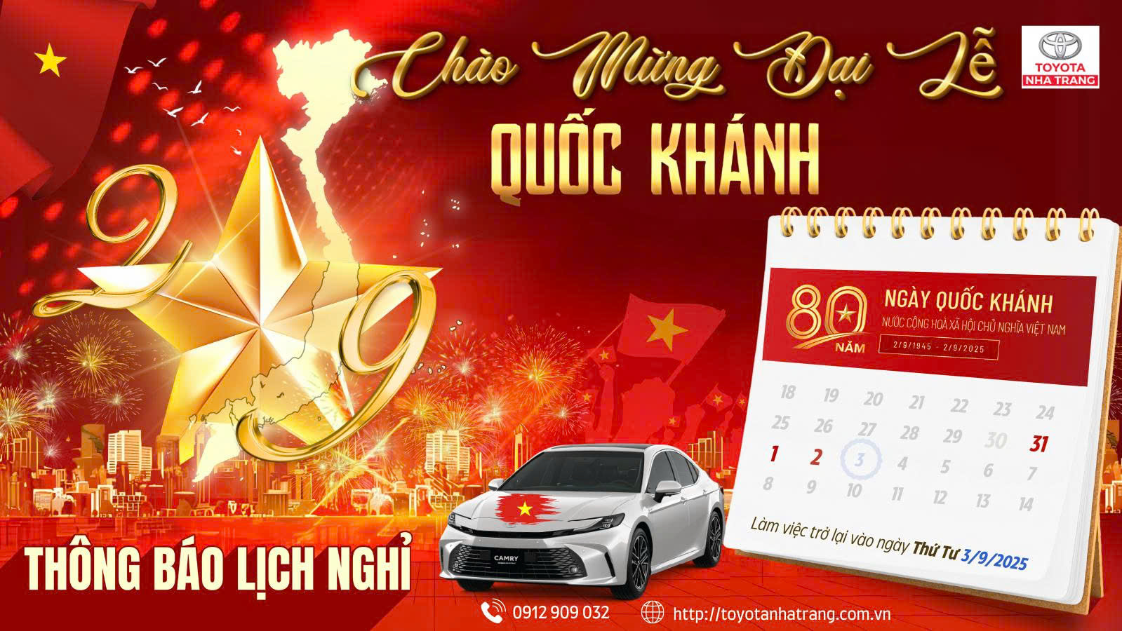 Toyota Nha Trang xin kính gửi đến Quý Khách Hàng thông tin về lịch nghỉ lễ như sau: