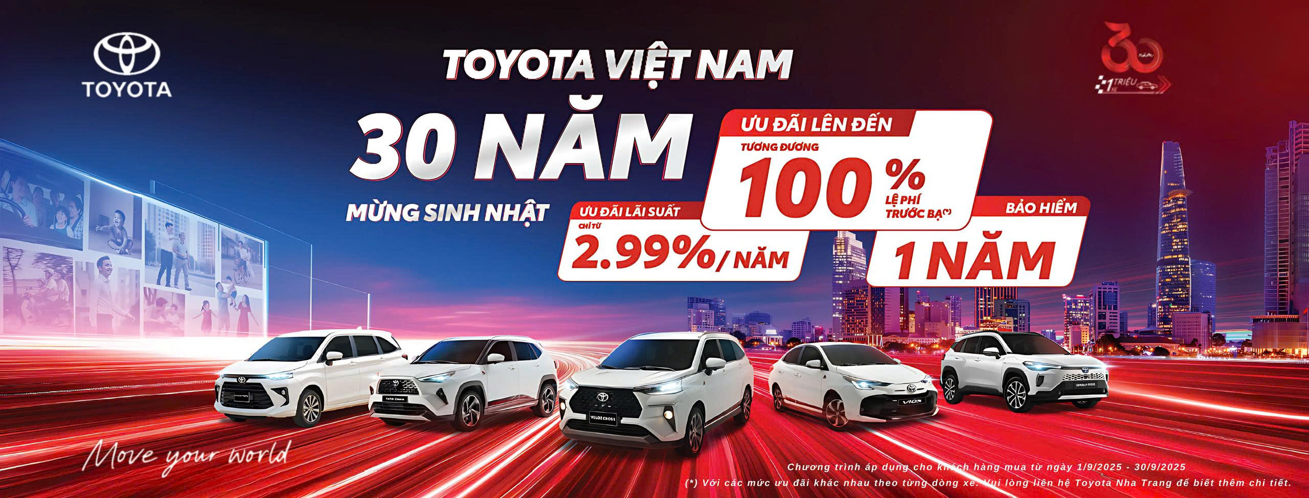 Mừng sinh nhật 30 năm, tháng 9 này, Toyota Việt Nam gửi tặng khách hàng loạt ưu đãi đặc biệt. Đây chính là cơ hội tuyệt vời để dễ dàng sở hữu chiếc xe mơ ước với mức giá cực hấp dẫn.